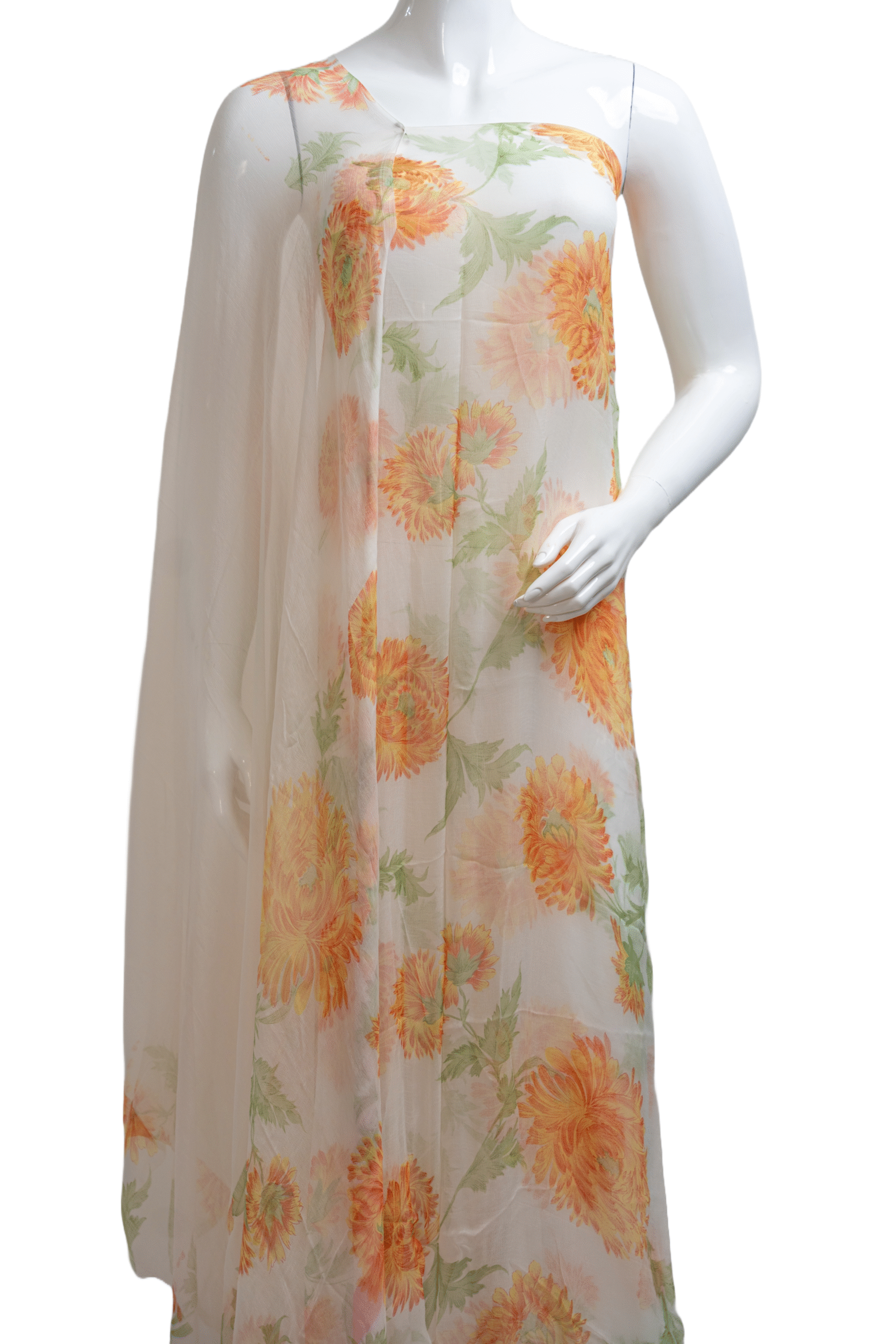 Lightweight pure georgette fabric with vibrant digital prints — soft, flowy, and perfect for elegant ethnic or fusion wear.